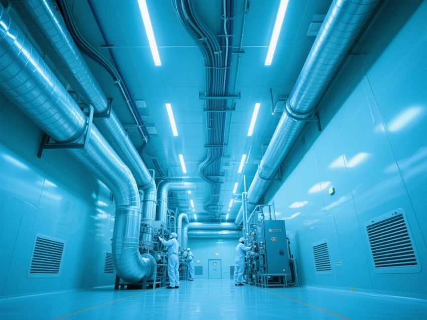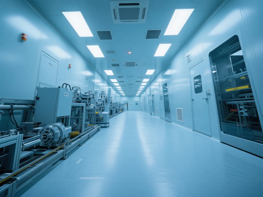 围护系统:采用50mm厚金属夹芯彩钢板墙体,表面覆有抗静电涂层,接缝处采用圆弧过渡设计,避免积尘。天花板采用FFU(风机过滤单元)满布布局,配合高效HEPA过滤器,确保垂直层流气流组织,洁净度稳定控制在≤1,000颗粒/立方米(≥0.5μm)。