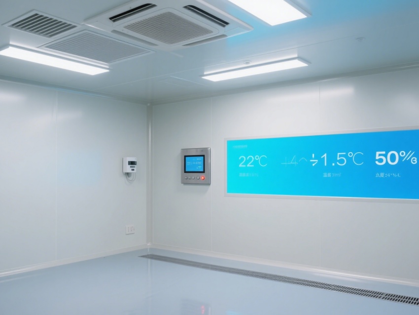 核心的恒温恒湿系统通过智能PLC控制与空气循环系统,精准将温度维持在22℃±1.5℃、湿度50%±5%的范围内,确保生产环境的高度稳定。车间内配备的温湿度监控屏可实时显示关键参数,让环境状态一目了然。