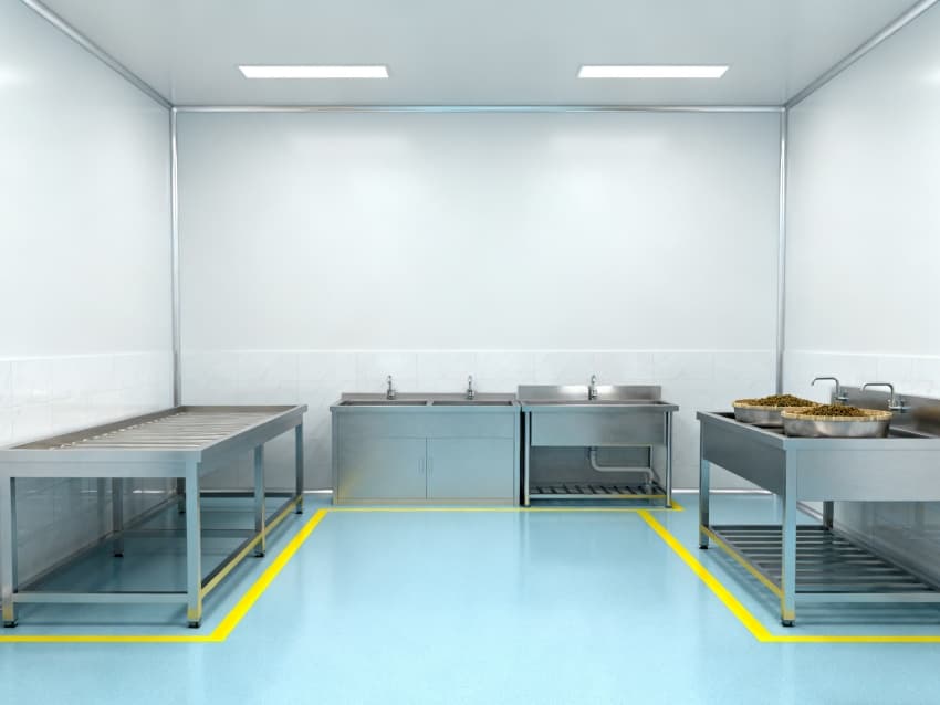 车间整体遵循医药级洁净设计标准,地面采用浅蓝色抗菌防滑环氧地坪,通过无缝一体化施工工艺,彻底消除药渣残留隐患与卫生死角,其卓越的耐腐蚀性与易清洁特性,能够从容应对中药清洗、切制等高频清洁作业;四周白色防尘抗菌墙面经过特殊工艺处理,具备优异的光线漫反射性能,搭配顶部科学布局的柔和照明系统,既保证操作人员能够清晰观察药材炮制过程中的性状变化,又为生产环境构筑起一道洁净无菌的安全屏障。