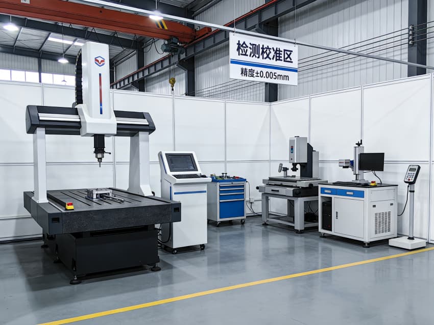 在 “检测校准区”,三坐标测量仪、影像仪等专业设备可实现 ±0.005mm 的检测精度,从原材料入厂到成品出库,全流程把控尺寸公差与形位精度;“精密安全加工区” 则通过自动化设备与标准化作业看板,将安全管控与生产效率深度结合,保障批量生产的稳定性。