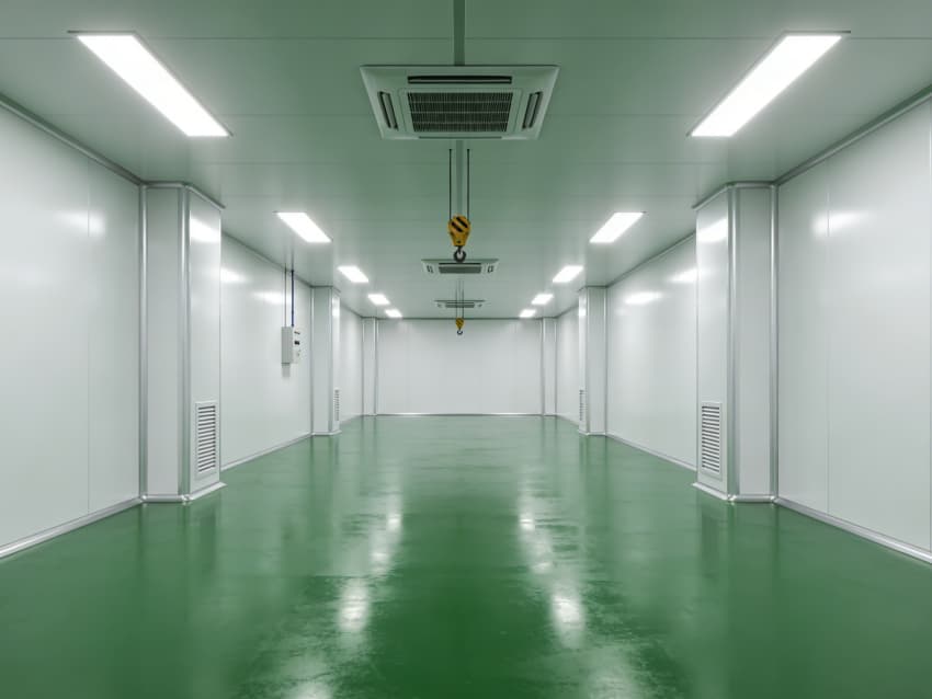 墙面采用白色食品级洁净抗菌涂层施工,推行无缝拼接与高精度找直工艺,阴阳角采用R50圆弧倒角处理,杜绝积尘死角,涂层附着力达2.5MPa,硬度≥2H,可耐受高频次洁净消杀与工业粉尘防护。各功能区域针对性实施专项工艺:核心加工区地面增设多层阻尼减震垫层,采用浮筑地面施工技术,有效隔绝振动干扰;检测区墙面做保温隔热一体化处理,预留精密仪器专用管线预埋孔,确保恒温恒湿环境稳定;装配区采用防静电接地网格预埋工艺,保障零件装配过程静电安全。