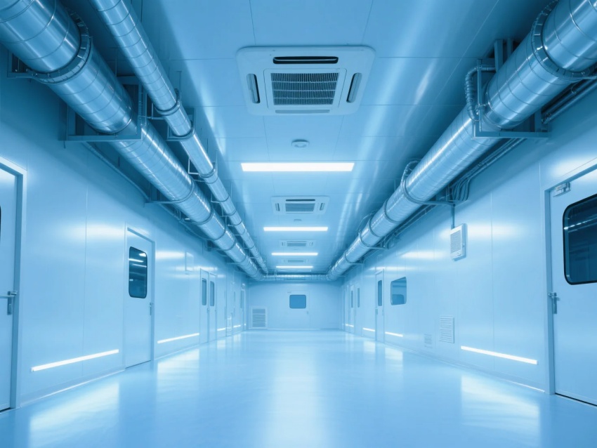 三维污染控制:天花板ULPA过滤(99.9995%@0.12μm)+墙面纳米涂层+地板层级增压(0.06"WG梯度)