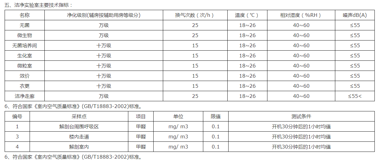 1)总体要求:实验室的建筑装饰应遵循不产尘、不积尘、耐腐蚀、防潮防霉、容易清洁和符合防火要求的总原则。实验室内空气直接接触的外露材料不得使用木材和石膏。