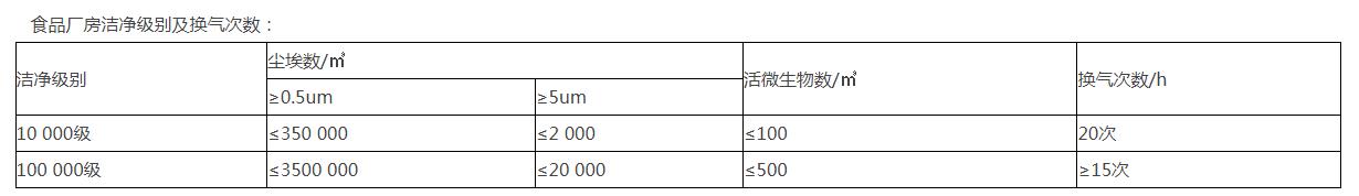 2、按照生产工艺和卫生、质量要求,划分洁净级别,具体级别及要求: