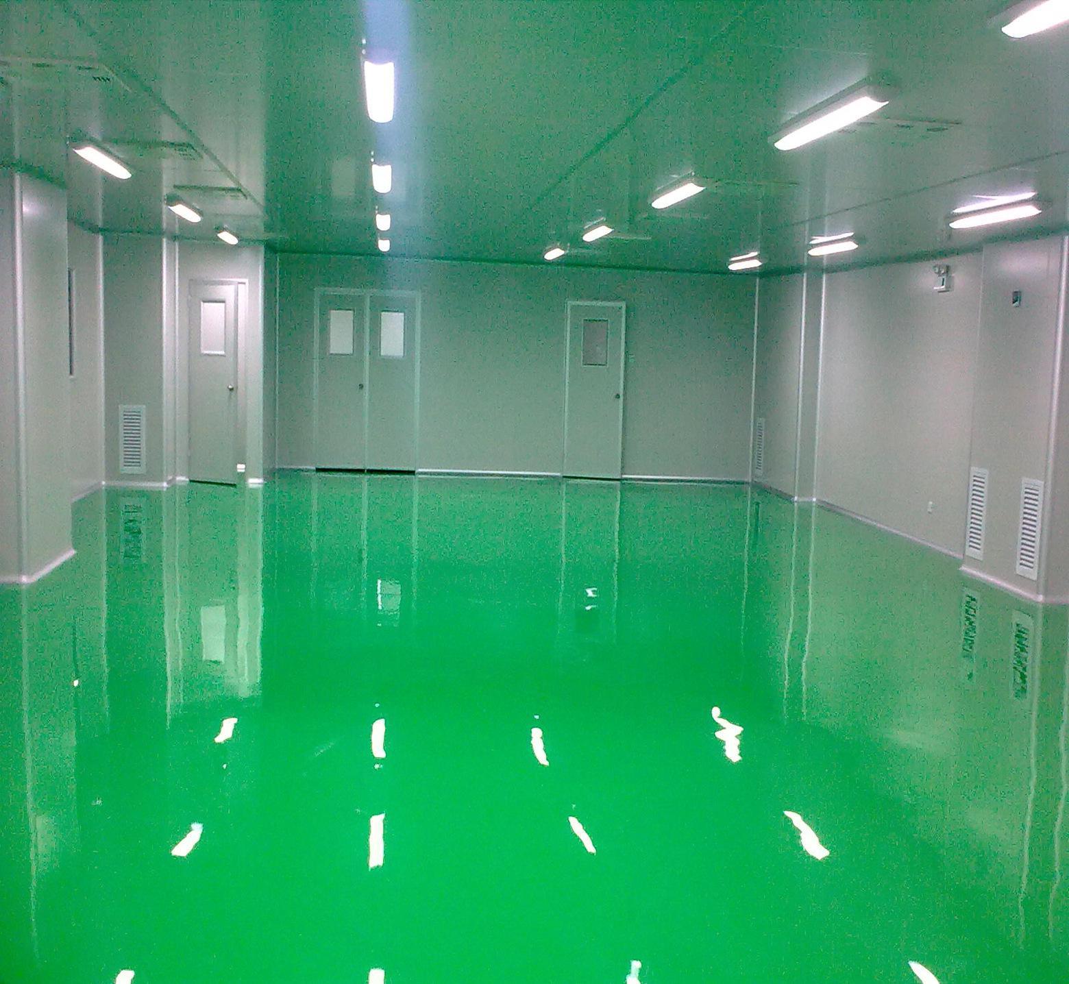 2、地面平滑没有缝隙,要耐腐蚀和耐磨易于打扫。施工时使用浇水磨石地面。石子直径在10mm左右,中间有铜条分隔,不使用玻璃条。现在的自流平使用的是一种树脂类复合地坪,特点是无色无味、无毒,可以起到很好的无缝衔接,耐油碱酸。防静电、发尘小等多种特点。在医药、电子、工业等车间厂房得到了广泛应用。使用时间为6年以上。地坪上下铺设防潮层,混凝土不易接触洁净区域。