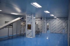 合肥食品厂净化车间房墙、顶板才一般多选用50毫米厚的夹心彩钢板生产制造。路面可选用环氧树脂自流坪环氧地坪或高級耐磨损塑胶地板,有抗静电规定的,可采用抗静电型