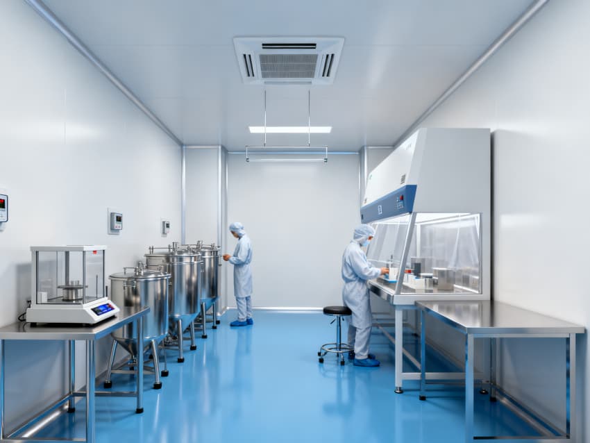 核心生产车间参数差异化设计:原料处理车间为10万级洁净区,配备初、中、高效三级过滤系统,高效过滤器效率≥99.99%,送风量2000m³/h;试剂配制车间达万级洁净标准,采用顶送风、侧回风模式,单向流风速0.3-0.5m/s,温湿度控制精度±2℃、±5%RH;无菌分装车间为百级洁净区,配置层流罩,洁净度≥0.5μm尘粒≤350个/m³,微生物≤1个/皿。