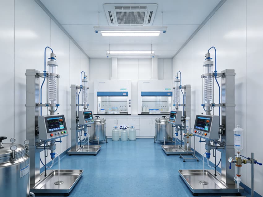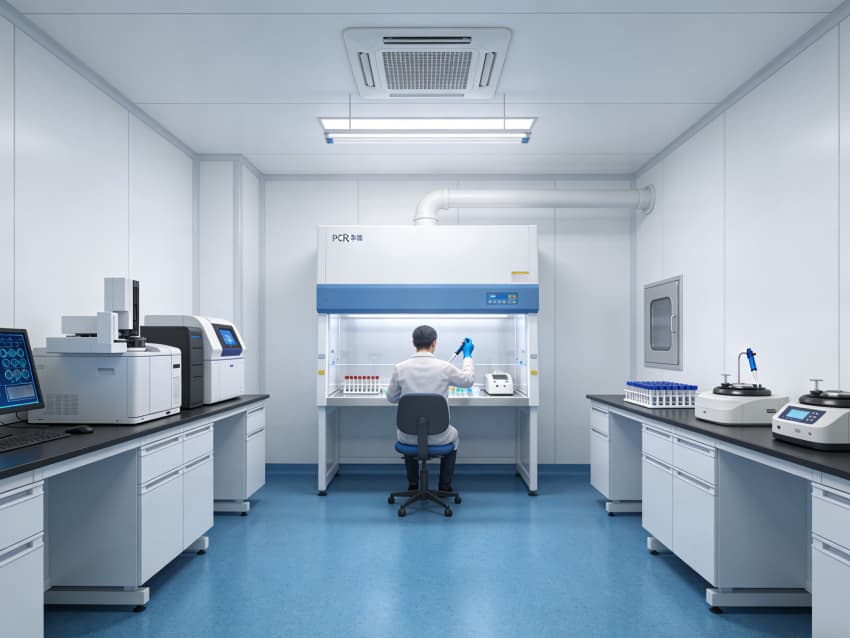CGT医药研发生产车间内部采用蓝色地面与白色墙壁的简约统一风格,严格契合GMP最高等级洁净规范,精准匹配细胞治疗、基因工程等研发生产的无菌严苛需求。蓝色地面选用医用级高活性抗菌环氧自流平材质,经基层抛丸强化、抗菌底漆涂刷、环氧砂浆找平、抗菌罩面固化四道核心工序,表面平整无缝隙,具备强效杀菌特性,可耐受高频次过氧化氢熏蒸、酒精擦拭等清洁消毒作业,杜绝微生物滋生与交叉污染。