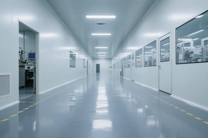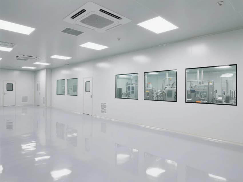 本工程严格依据ISO14644-1Class7洁净标准,采用"工业4.0"设计理念,打造智能化电子光伏生产环境。主体结构采用??榛嗑皇蚁低?,50mm厚深灰抗菌彩钢板墙体与浅灰防静电环氧自流平地坪形成未来工业美学基调,表面电阻稳定控制在10^6-10^9Ω范围。