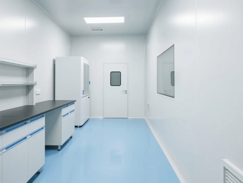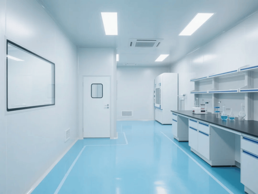 本方案采用生物科技极简风格,严格遵循ISO14644-1Class6洁净标准??占湟源堪卓咕矢职迩教逵肭忱痘费跏髦仄汗菇ㄖ魈蹇蚣?,营造纯净、高效的检测环境。墙体采用50mm厚医疗级抗菌彩钢板,所有接缝处采用R30mm圆弧处理工艺,确保无卫生死角。浅蓝环氧地坪添加防滑颗粒,摩擦系数≥0.6,同时具备优异的耐化性。