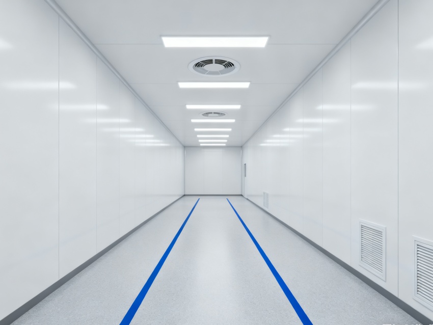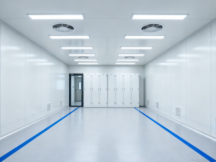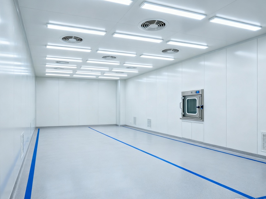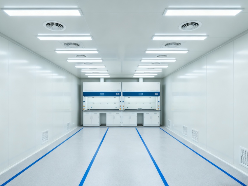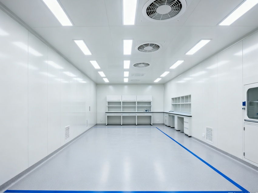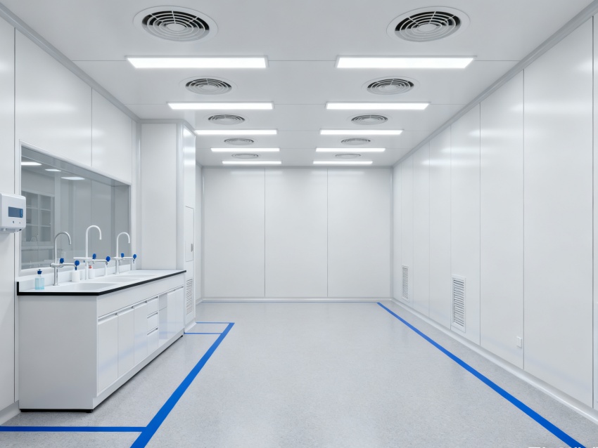 实验室洁净度严格遵循万级标准(ISO8级),每立方米空气中≥0.5μm微粒数≤352000个,采用初效-中效-高效三级空气过滤系统,配合垂直层流送风设计,实现每小时20-25次空气置换。室内墙面采用耐腐蚀洁净彩钢板,地面为PVC无菌卷材,所有接缝做密封处理;温度控制在22±2℃、相对湿度50±5%RH,部分区域维持5-8Pa负压,有效防止交叉污染,符合生物安全实验室建设规范。