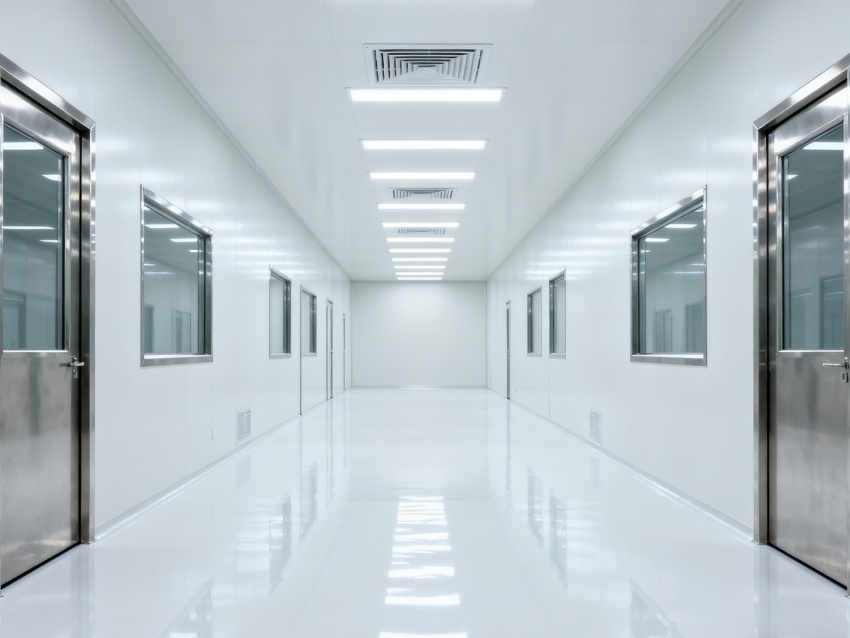 该芯片生产洁净车间净化装修工程,专为芯片的高精度制造打造。车间采用高等级洁净设计,墙面、地面为无缝抗菌材质,搭配均匀明亮的LED照明系统,营造出一尘不染的生产环境。