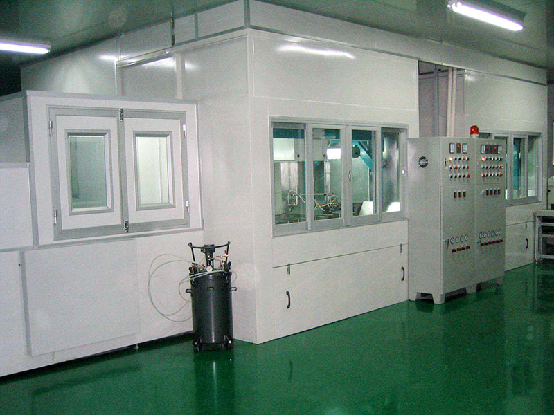 生产车间经药监局检测,洁净度达到10万级制药生产标准,十万级无尘净化车间标准规定空气尘埃粒子数一立方米不超过三十五点二乘以十万,换气次数一般按照每小时15-20次,比较适合空气洁净等级较低的生产场合。十万级无尘净化车间采用工艺处理措如下: