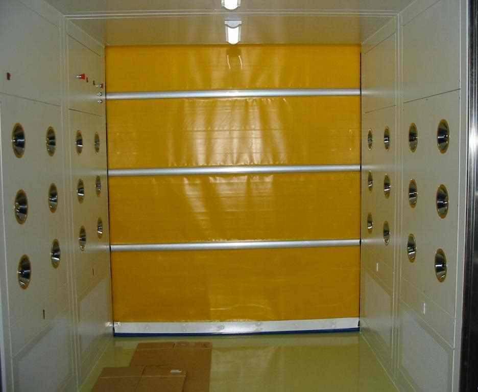 客户在选择货淋室的时候应该根据工厂车间生产所需要的货物周转形式来选择合适自身的形式;通常手动双开门的适用于货料非频繁的情况下使用;移门风淋室适用小型推车,一般应用于电子产品车间;而快速卷帘门货淋室一般适用于大型包装车间的物流铲车,叉车应用,可以快速的频繁开启;