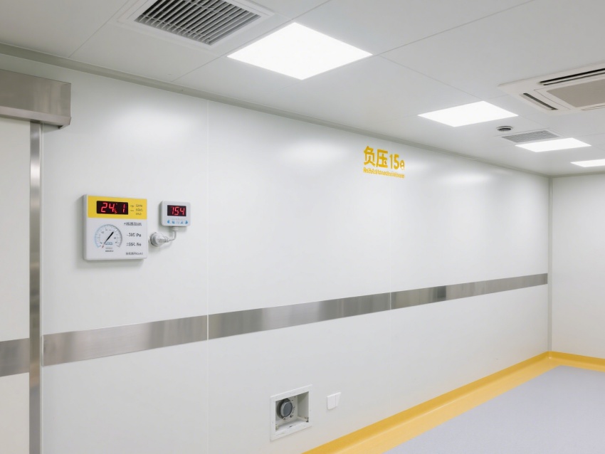 内部设施专业且完善,生物安全柜为实验操作提供无菌防护;各类气路、水路接口布局规范,满足检测过程的资源供应;配备应急冲眼设施与生物危害废液处理区,保障实验安全??占渖杓谱⒅亟嗑挥敕阑?,墙面、地面为无缝抗菌材质,便于消毒灭菌,黄色警示线清晰划分功能区域,各类监控仪表实时显示温湿度、压差等关键参数,确保实验环境稳定可控。