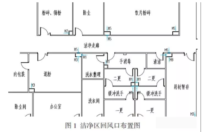 所以,在洁净室空调设计时,要同时有建筑底图和工艺布置图,根据工艺要求进行设计:顶上布置高效送风口时,尽量靠近工艺设备均布。布置回风口时,根据生产工艺特点,洁净度要求高的,回风口布置在远离设备侧;产尘或产生其它污染气体的,回(排)风口布置在最靠近设备处,这样,才能保证洁净室的洁净度,最大限度的保证洁净室工艺设备的安全有效使用。洁净室回风口设计中存在的另一个问题是,回风口布置的太少,回风速度偏大。