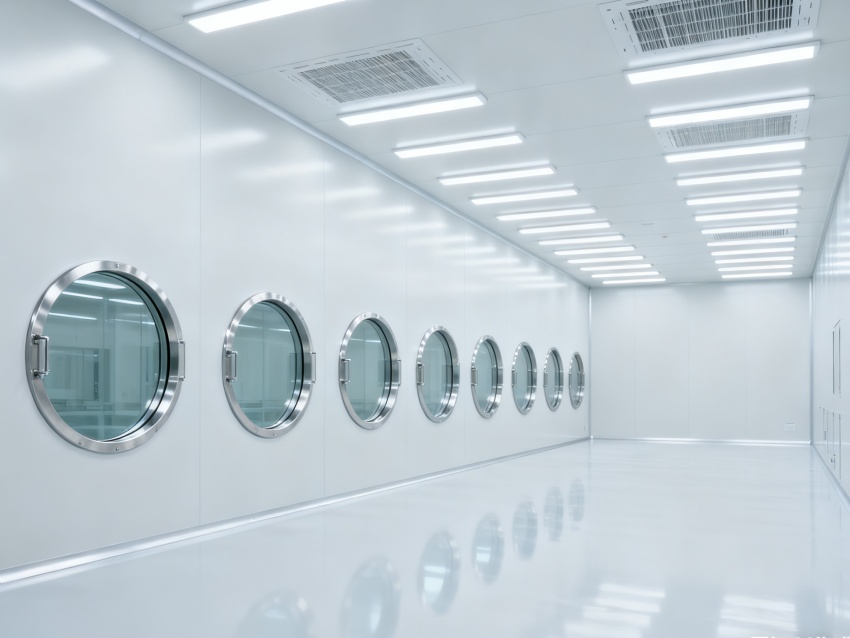 材料选用兼顾洁净与维护:地面铺设双层环氧自流平,底层强化抗压,面层抗污处理,常规清洁便捷;墙面采用卡扣式彩钢板,支持单块拆卸,降低维护成本;门窗配备气密平移门、自动闭门器及密封胶条,隔绝外界污染。?