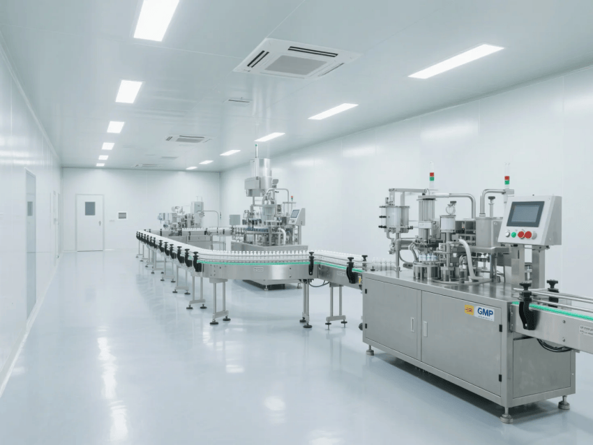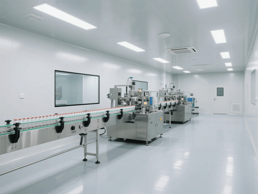 本工程严格遵循GMP及ISO14644-1Class8标准,专为无菌制剂灌装生产打造高标准洁净环境。整体采用医疗级白色抗菌彩钢板与浅灰环氧自流平地坪的洁净配色方案,营造安全、专业的无菌生产氛围。