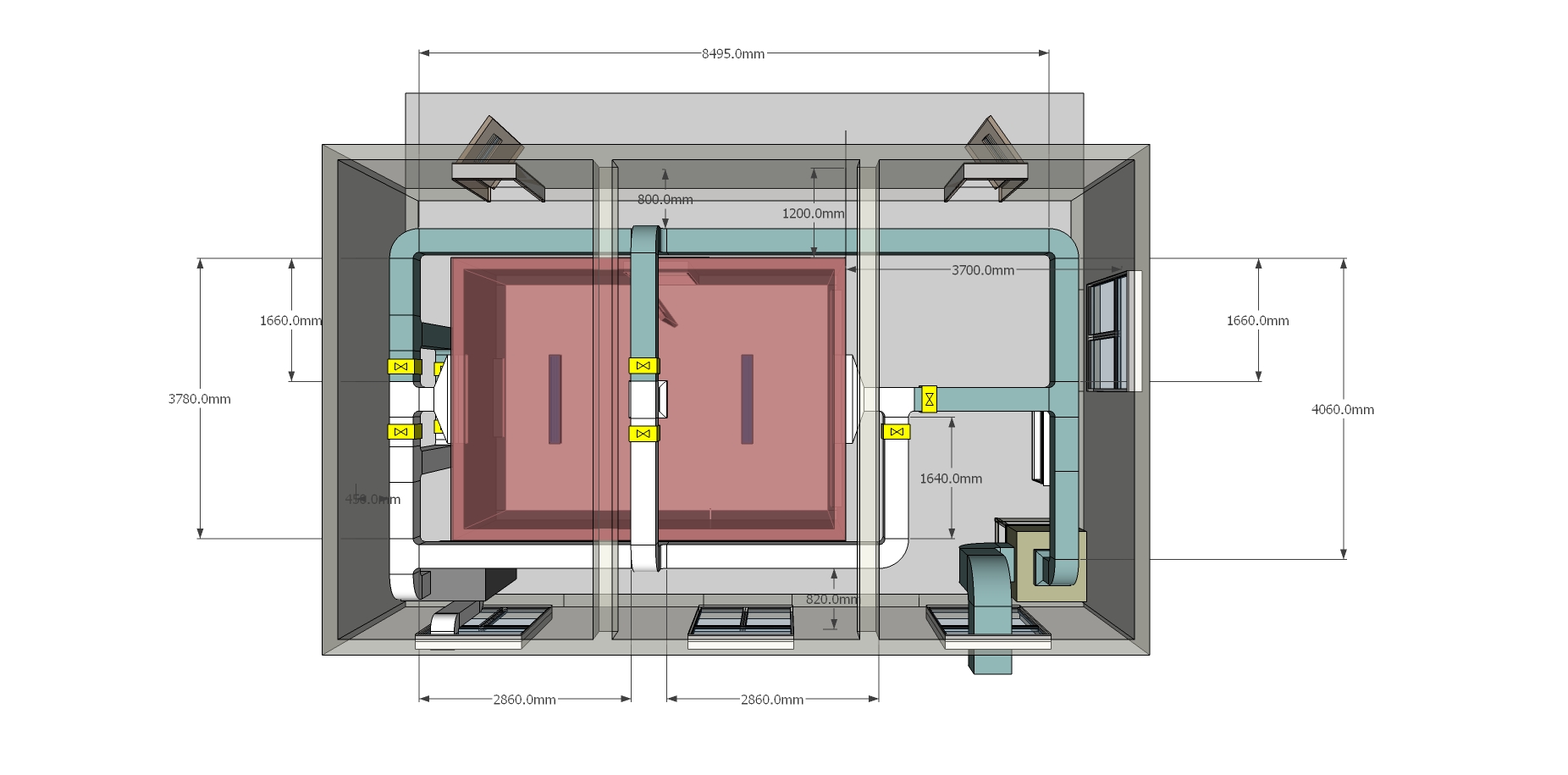 实验内室尺寸: 5m×3.5m×2.5m(长×宽×高)。