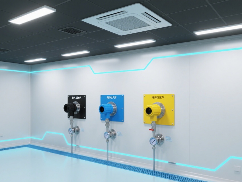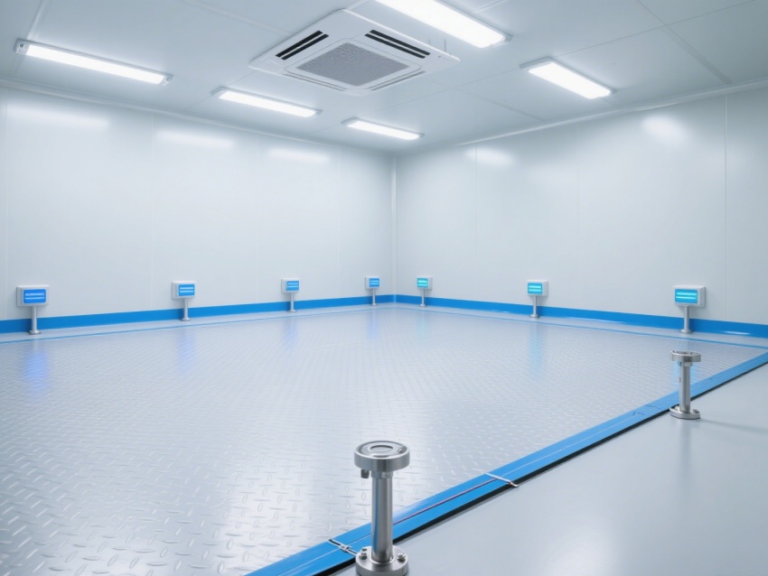 走廊采用一体化洁净设计,地面蓝色标识线清晰规划动线,各类管线与设备布局兼顾功能性与美观性。整体工程通过材质选用、空气净化、智能监控的协同,为芯片检测提供了超洁净、高稳定的专业环境,有力保障芯片检测的精度与可靠性,是芯片研发与质量把控的核心技术支撑单元。