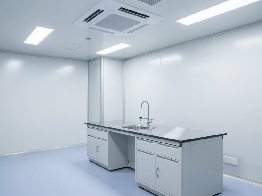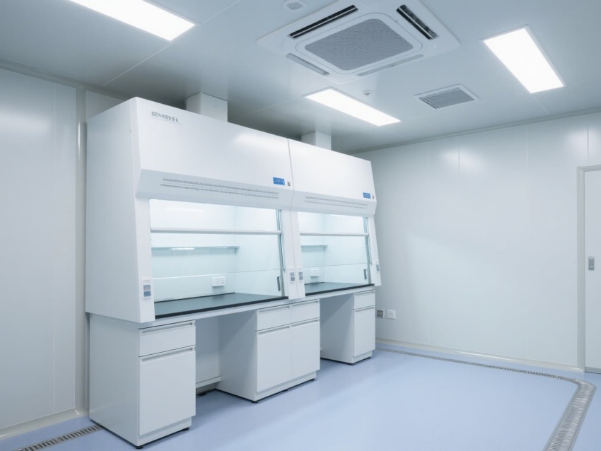 空间配备不锈钢实验台基础框架,预留耐腐蚀试剂架与电源接口,嵌入式LED灯带提供400lux均匀照明。恒温恒湿系统精准控制温度(20-24℃)与湿度(50-60%),洁净门窗采用双层钢化玻璃,兼顾密封性与观察便利性,全方位保障实验数据的准确性与可靠性。