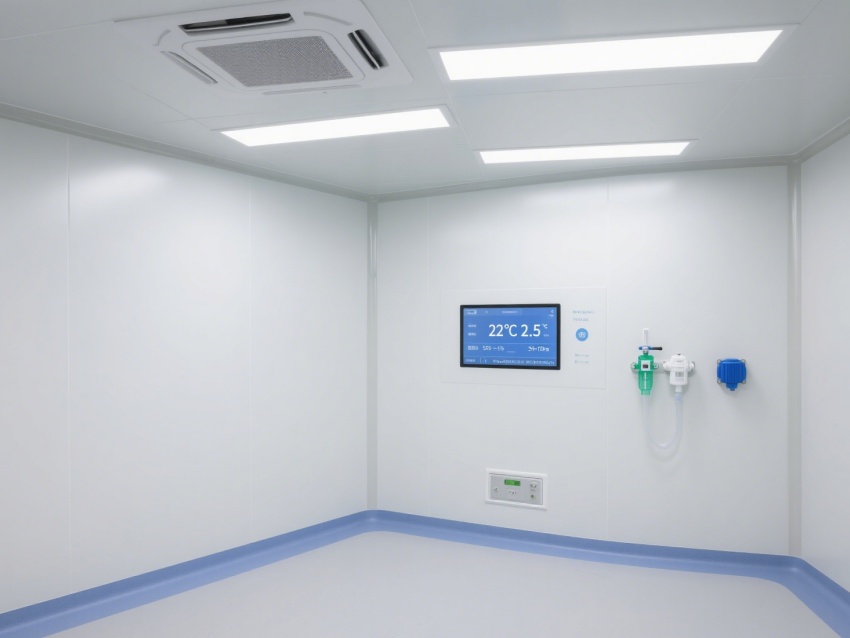 环境监控屏实时显示温湿度等关键参数,保障室内环境稳定可控;走廊与操作区的动线设计合理,圆弧墙角避免积尘,照明系统明亮均匀,为医疗操作提供良好视野。整体工程通过洁净环境打造、功能分区规划与智能监控的协同,为手术、精密检查等医疗场景提供了安全、无菌的专业空间,是保障医疗质量与患者安全的重要设施。