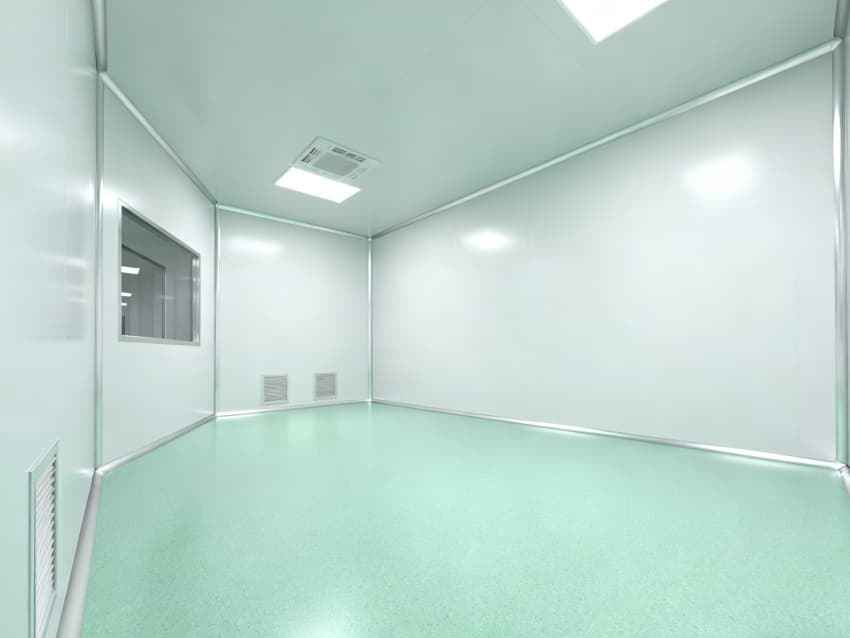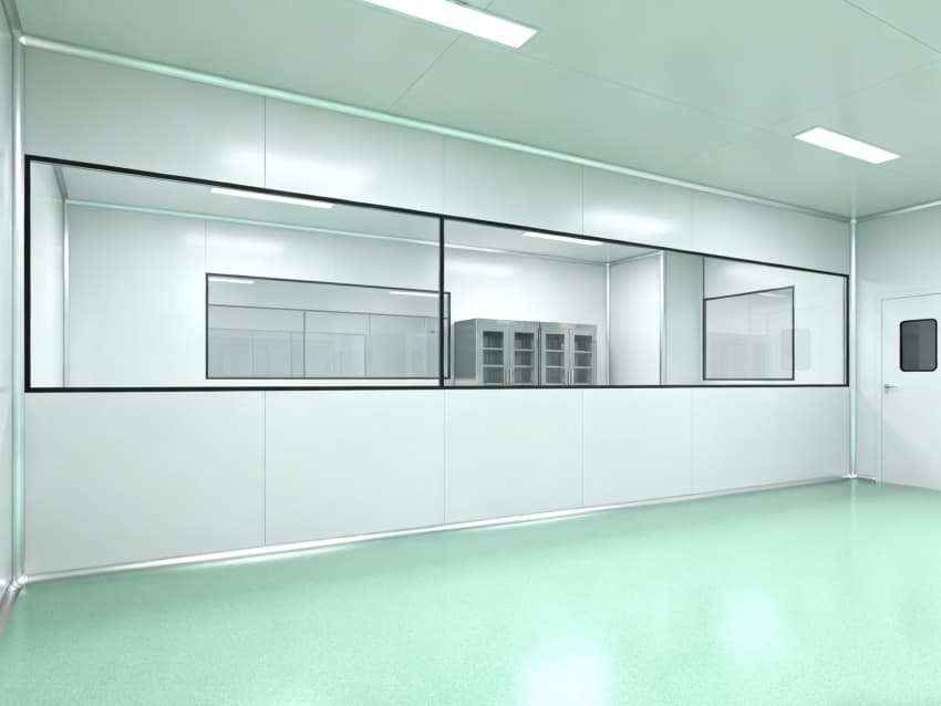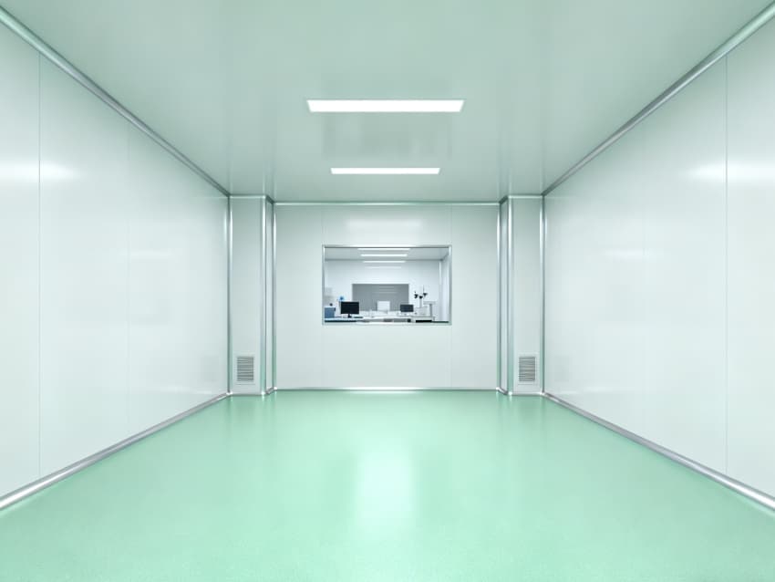 内部生产车间以浅绿色防滑防污地面、白色抗菌墙壁为基础,按不同视角呈现功能分区:正面视角为核心生产区,预留8米柱距,适配注塑机、精密组装设备;侧面视角为无菌操作预留区,可快速升级至万级洁净标准,满足植入类器械生产;背面视角为物料净化区,设双层传递窗,避免原料污染;左右侧视角分别为质检区与包装区,前者预留检测仪器平台,后者规划自动化包装动线;45度角视角展现人员洁净通道,含风淋室、更衣间,严格控制人员带入污染物。整体空旷布局兼顾设备灵活摆放与合规要求,为医疗器械生产提供安全、高效的专业化空间。