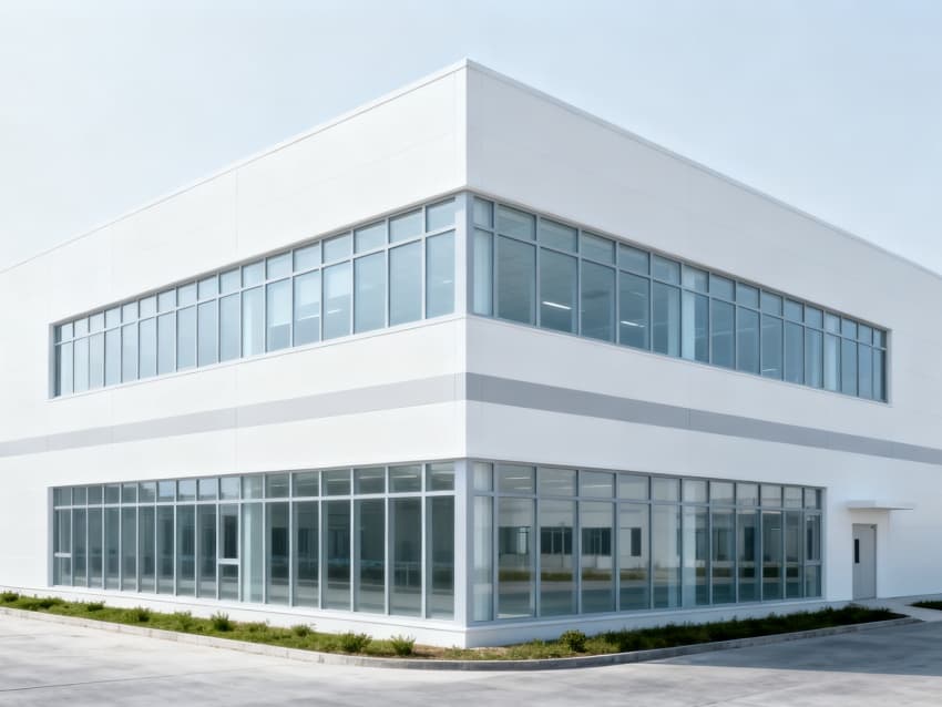 本项目为医疗器械专业化生产载体,聚焦医用耗材、精密医疗部件等产品制造需求,严格遵循医疗器械GMP生产标准。外立面采用浅灰节能幕墙+密封式玻璃设计,有效阻隔外部粉尘、温湿度波动,为内部洁净生产提供稳定环境,整体风格简洁大气,契合医疗产业严谨属性。?